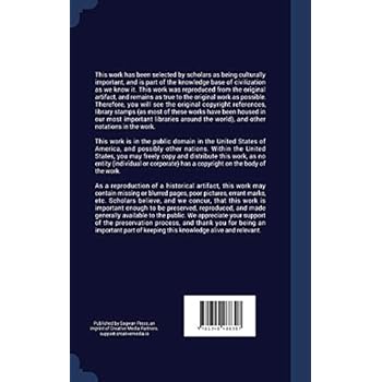 This work has been selected by scholars as being culturally important, and is part of the knowledge base of civilization as we know it. This work was reproduced from the original artifact, and remains as true to the original work as possible. Therefore, you will see the original copyright references, library stamps (as most of these works have been housed in our most important libraries around the world), and other notations in the work.This work is in the public domain in the United States of America, and possibly other nations. Within the United States, you may freely copy and distribute this work, as no entity (individual or corporate) has a copyright on the body of the work.As a reproduction of a historical artifact, this work may contain missing or blurred pages, poor pictures, errant marks, etc. Scholars believe, and we concur, that this work is important enough to be preserved, reproduced, and made generally available to the public. We appreciate your support of the preservation process, and thank you for being an important part of keeping this knowledge alive and relevant.